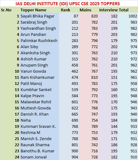 A glorious tradition of achievement of students of IAS DELHI INSTITUTE (IDI) continues……..