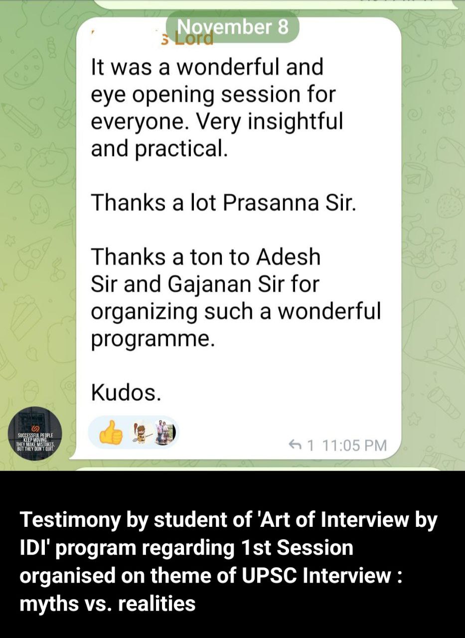 Ishika Singh (IA&AS) scored 216 (the highest mark) in the UPSC interview in 2024, IAS Anshu Priya (AIR-16), who scored 204 marks (the highest mark that year) in the UPSC interview in 2021, and IFS Swathika R P, who scored 200 marks in the UPSC Interview in 2022, were students of the IDI’s Art of Interview Program!