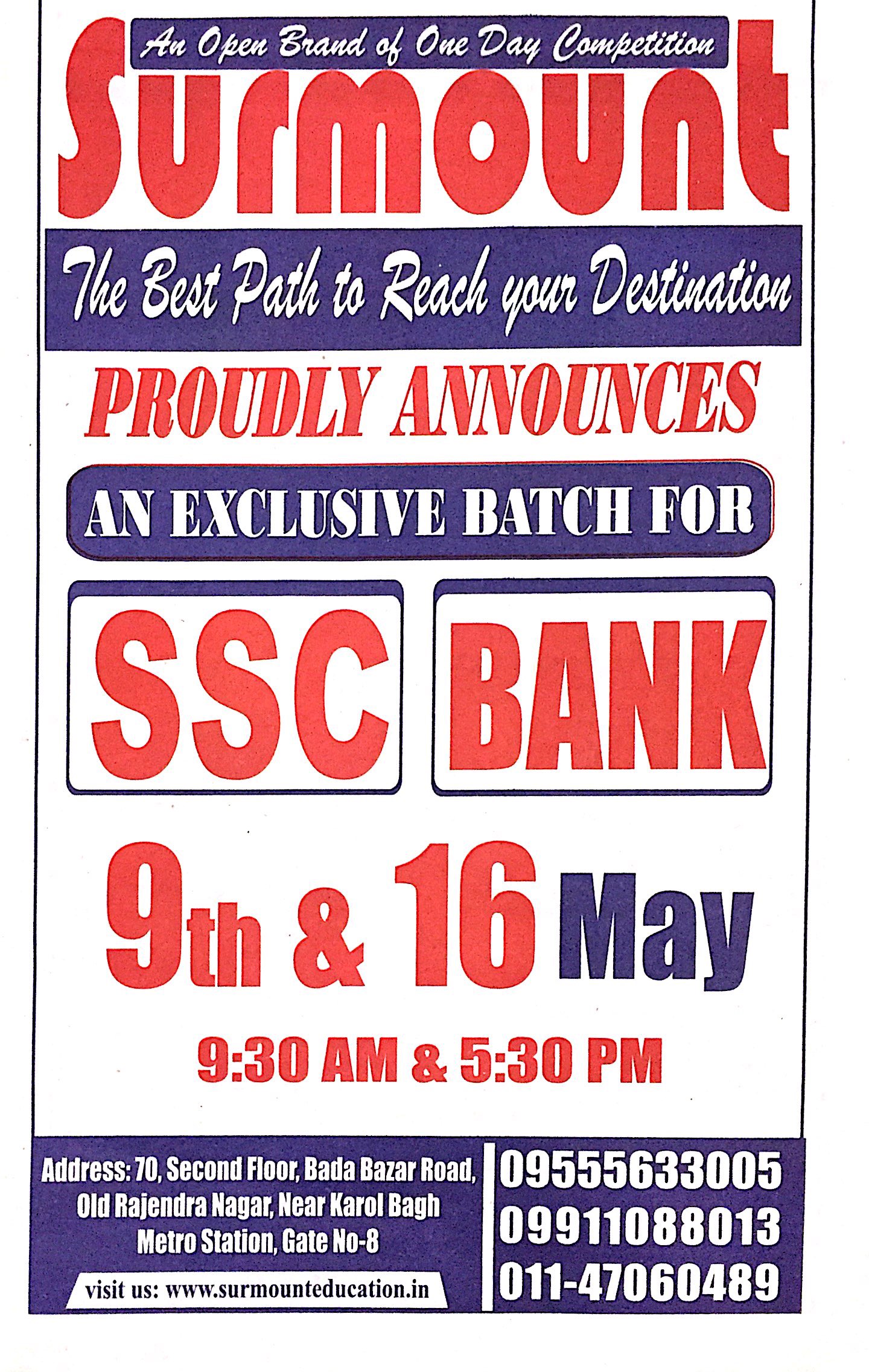 Address : 18/1, First Floor, Old Rajinder Nagar , Opposite to Agarwal Sweet Corner, Near Karol Bagh Metro Station, New Delhi – 110060.